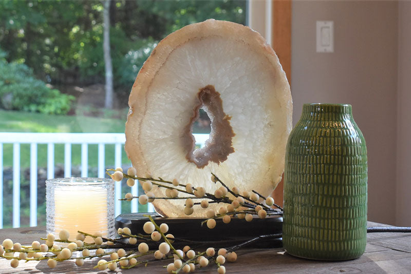 Eye-catching statement pieces can spark conversations and change the ambience of a room. Our selection includes natural slices and wheels of precious stones, as well as decorative wall mounts and gemstones on stands. Transform your home with these unique treasures from Mother Earth.
